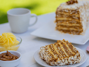 Delgadas capas de hojarasca casera, rellenas de manjar, crema y frambuesa natural, conforman una mezcla homogénea y remojada que hacen que la torta sea el producto mas buscado por nuestros clientes.